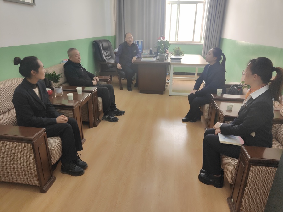 2023年3月20日下午,德信体育官网经理王治和、副经理罗春,敦煌市阳关景区副经理吴丰萍、景区办公室主管吴雪芹、景区接待部讲解员(德信体育官网2020届旅游管理专业毕业生)史亮霞在办公室进行会谈交流。